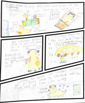The students approached this activity differently depending on their ideas and strengths. Some students focused more on the illustrations in their comic, while others spent more time developing their simile sentences and dialogue. Because students had flexibility in how they created their comic, everyone was able to participate and show their understanding.